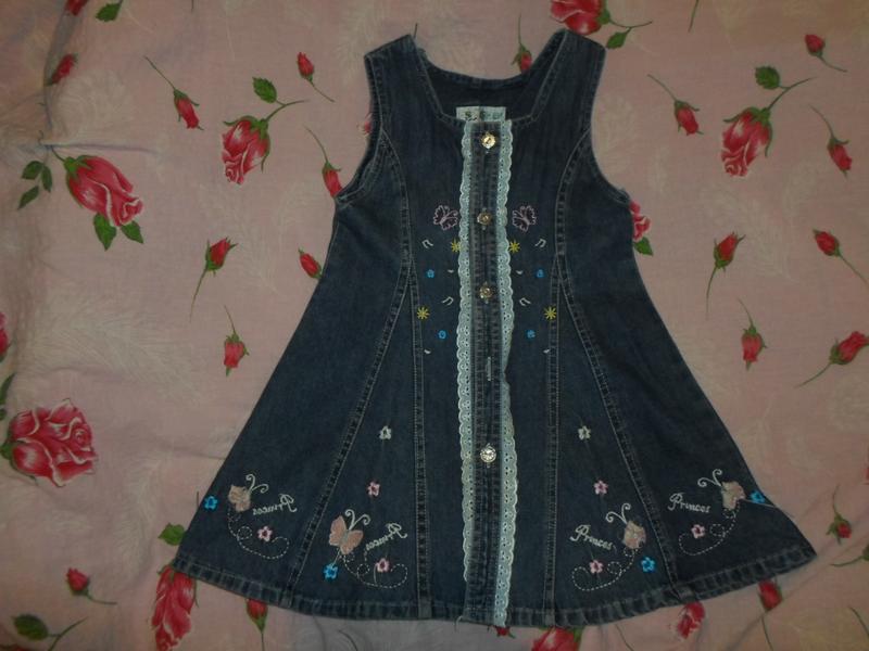 Джинсовий сарафан для дівчинки, ПОГ 31 см, довжина по спинці 58 див. Один гудзик відсутня.