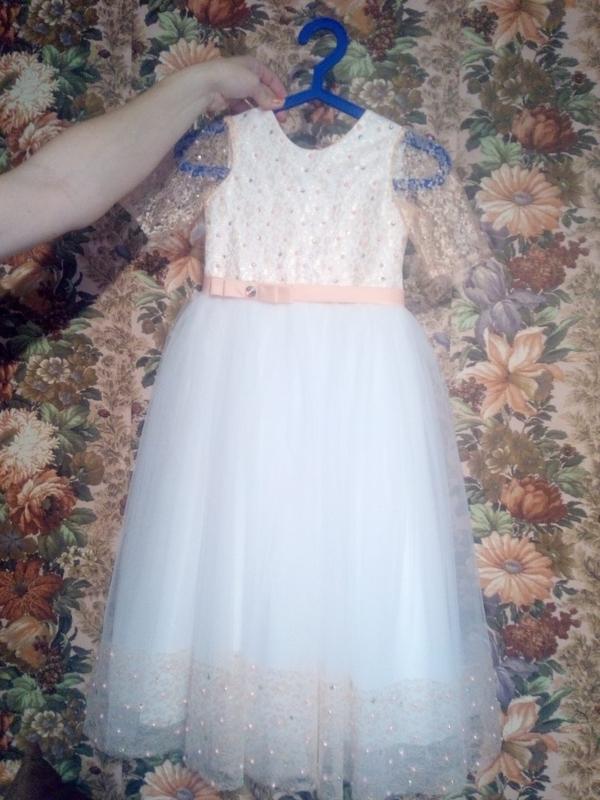 Сукня у відмінному стані.Без дефектів.Без плям.Практично нове-одягнене один раз на урочисту частину випускного в дет. сад .Більше фото можу відправити через Вайбер.