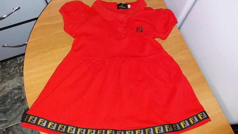 В цьому платті Ваша дівчинка буде виглядати дуже стильно. Сукня Fendi красивого червоного кольору. Нове. Склад: 100% сotton. Довжина 41 см, до талії 20 см, ПОГ - 26 см, ПОТ - 27 див. Одяг з Англії.