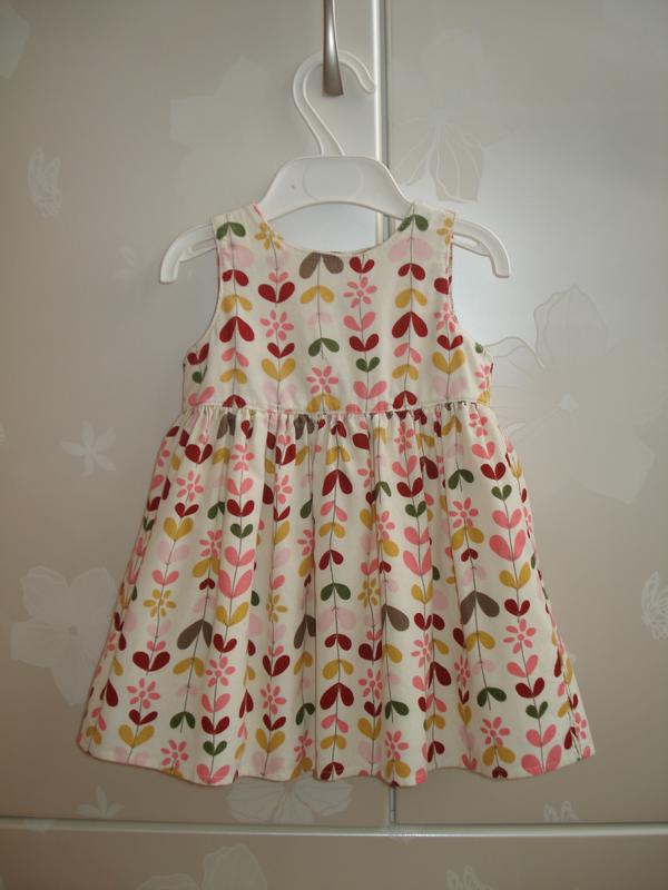 Платье Mothercare на девочку 3-6 мес. Возраст: 3-6 мес. Материл - микровельвет. Базовый цвет - молочный. Состав: 100% хлопок. На спинке - 4 пуговицы - одевать удобно. Платье в отличном состоянии. ЗАМЕРЫ: Длина - 41,5 см. Ширина (от подмышки до подмышки) - 25 см.
