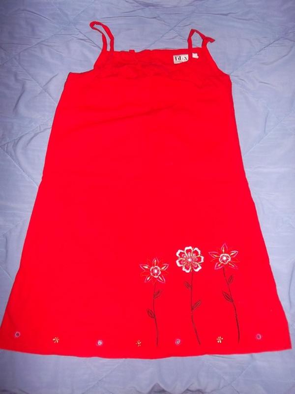 Сарафан с вышивкой хлопок красный на девочку 7-8 лет - id:x