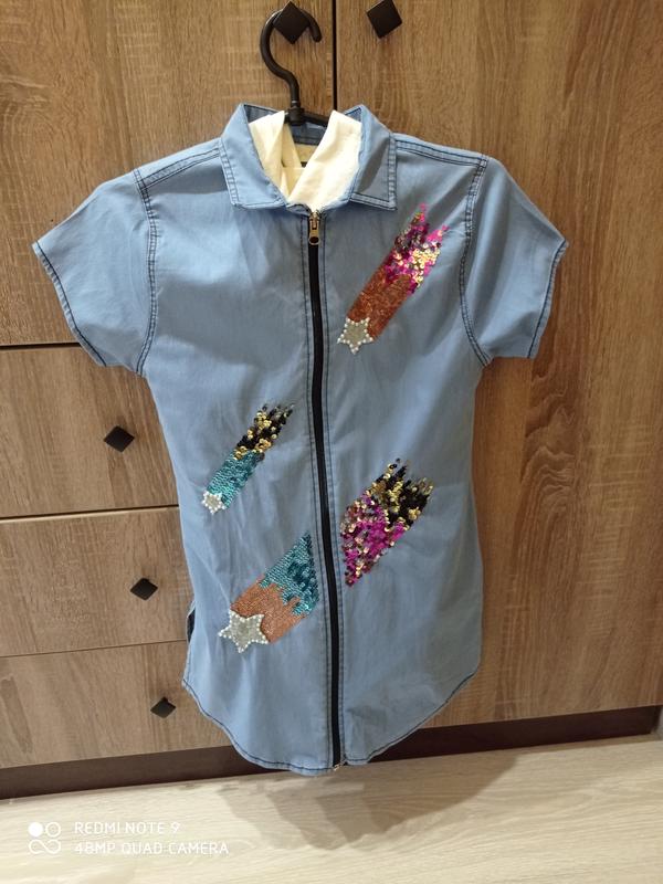 Мега стильна туніка-сорочка для справжніх модниць. Дуже якісна. в Ідеальному стані. Ідеально під стильні лосінки, і просто на літо. Не встигли одягнути, стала маленьким розміром.