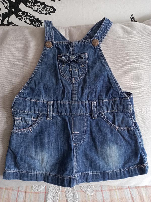 Джинсовий сарафан. дефекти: надорвана нашивка і маленька дірочка