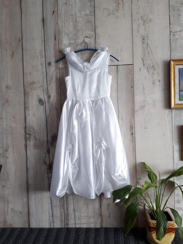 Біла довга атласна сукня 6-8лет