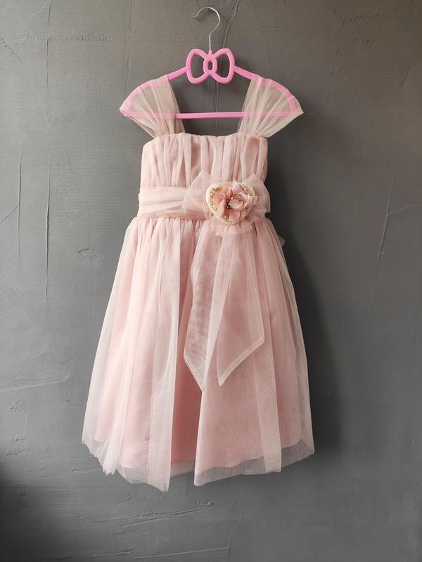 Очень красивое, нежное, эффектное платье для девочки. Бренд My best kid Цвет розовая пудра. Стиль baby doll. Брошь съёмная. Юбка очень пышная, три слоя ткани Молния идёт по спинке. Лиф сзади на резинке -- -- -- Made in USA 100%polyester -- -- -- Указан размер 5-6лет замеры: ширина лифа 29/32(резинка сзади) высота лифа 16(перед), 12(спина) ширина талии 32 длина юбки 49 длина платья от бретель до низа юбки 73