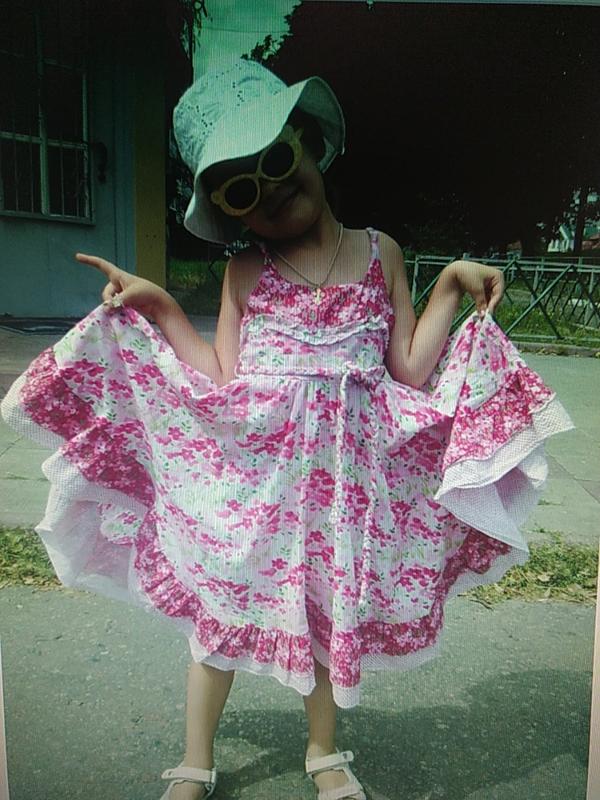 Очень красивое, нарядное хлопковое платье.В розоые розы...Очень милое,приятное к телу.Сзади резинки по спинке.Пояс-косичкой.Внутри на хб подкладке.Пятен дефектов нет.