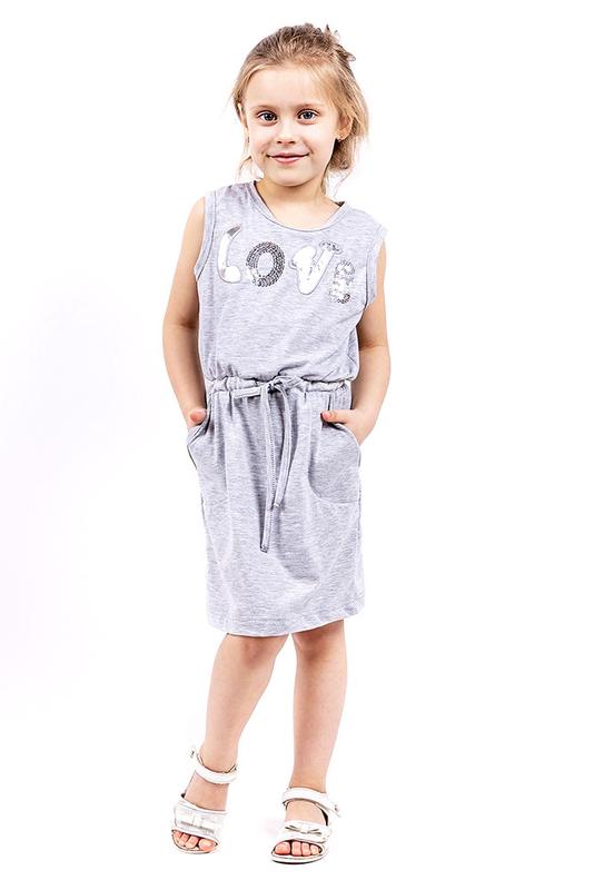 Платье для девочек без рукавов с вышивкой паетками Полотно: Фулликра серый меланж Состав:95% х/б + 5% ПЭ Таблица размеров детской одежды: Размер рост Длина изделия Ширина изделия Цена 60 104-110 61 32 +-1.5=110грн 64 116-122 66,5 34 +-1,5=120грн 68 128-134 72 36 +-1,5=130грн 72 134-140 77,5 37 +-1,5=135грн