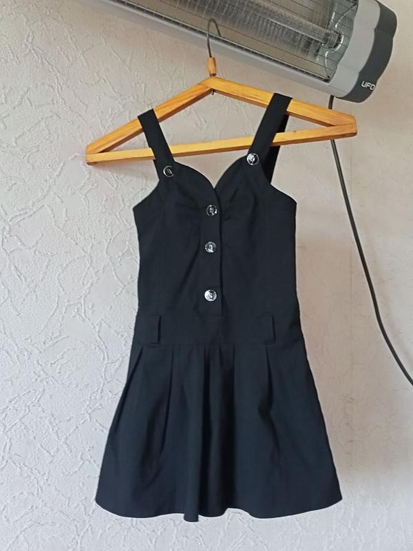 Продам удобный, лёгкий, стильный сарафан на девочку на возраст 4-5 лет. Состояние хорошее. Цвет чисто чёрный. В реальности лучше смотрится сарафанчик, чем получился на фото и цвет насыщенней чёрный. На шлейках по 2 пуговицы, которые регулируются, по размеру ребёнка. так и замеры писать буду, на застёгнутые пуговицы. Замеры: длина застёгнутая на нижнюю пуговицу 65,5 см, на верхнюю 64 см, длина шлейки 35,5 см, полу обхват подмышками 27,5 см ( сзади есть рези ночка так, что это в спокойном состоянии замер) рези ночка отлично тянется.