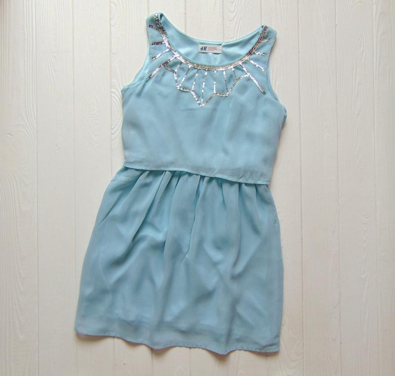 Нежное платье для девочки. Декорировано пайетками. Внутри подкладка. Пояс на резинке, тянется. Мягкий и приятный к телу материал. Шикарное качество. H&M. Размер 10-11 лет. Состояние: новой вещи. Состав: 100% полиэстер. Замеры: длина 66 см, длина до пояса 26 см, ПОГ 36 см, пояс 30Х2 см, пройма для рукава 16 см, плечи 28 см. Цена 250 грн.