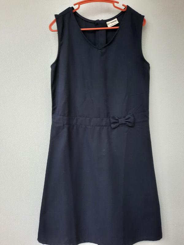 сарафан в школу новий. темно-синього кольору етикетку зрізав, але жодного разу не одягли. є фото , де збереглися магазини складки довжина виробу по спині 83 см пог 37 піт 36 см