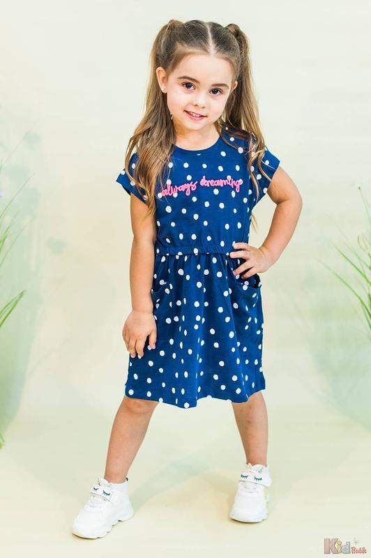 Легка літня сукня для дівчинки. Модель з натуральної тканини, прикрашена горошком на яскравим ліпленням. Сукня комфортна та приємна до тіла.