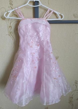 Гарне плаття ніжно рожевого кольору, розшите паєтками,ззаду поясок що зав'язується на бант і блискавка.Є під " юпник,виглядає дуже ніжно. Вишлю будь поштою при оплаті на карту.