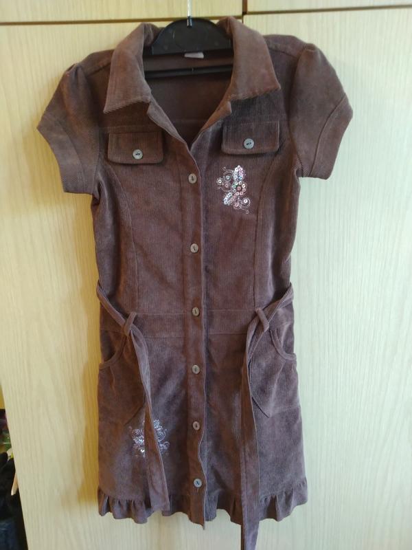 Продам вельветове сукню(сарафан), можна в школу. По бірці 128, буде довше. Довжина 67 см, ширина 32 див.