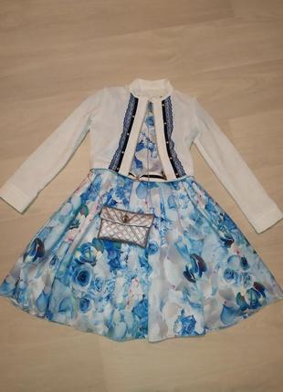 Дуже гарне плаття для принцеси. В комплекті болеро і сумочка. За рахунок фатину і подъюбника сукня гарно лягає.