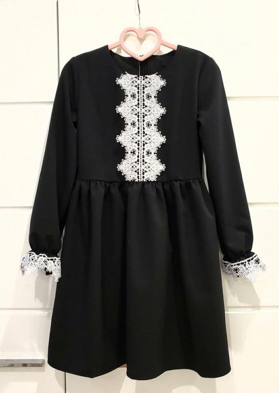 НОВИНКА!!! Шкільне плаття з костюмної тканини, оздоблене мереживом. Синьо та чорне 116 розмір Ціна 395 грн