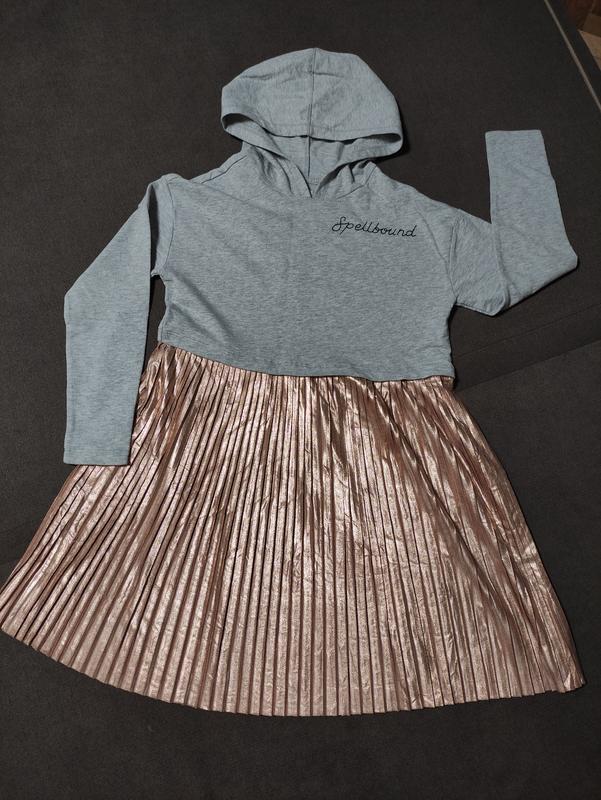 Сукня широкого крою, з капюшоном. Вік 10-12 років. Довжина 77 см, плечі 47 см, ОГ 44 см, рукав-45 см, від пахви 39 див. Верхня частина по спинці 31 см, нижня 46 див. Фірма Gymboree, куплена в Америці. Стан новий, не одягалось.