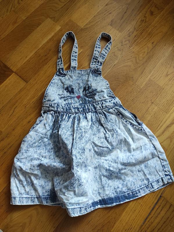 Сарафан під джинс Денис. Колір -ефект вареної джинси. Збоку кишені з замочками. Регулюється на дві довжини за рахунок шлейок на гудзиках.