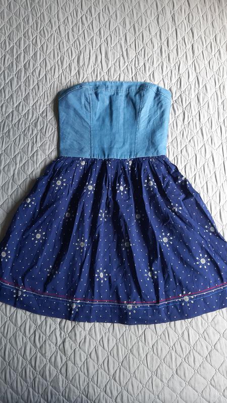 Дитяча сукня сарафан літня легка бандо топ корсет з голими плечима джинс синя спідниця
