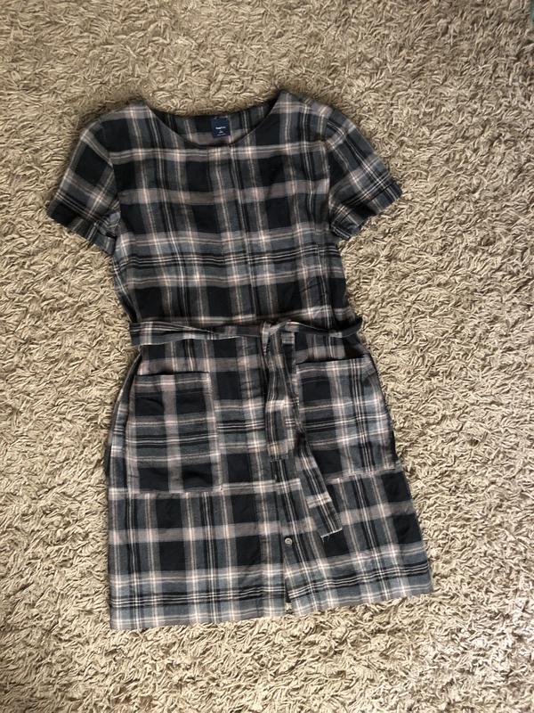 Заміри на фото,гарна тканина,накладні кармани ,стильно виглядає,прямого крою,можна носити з поясом і без,актуальна клітка