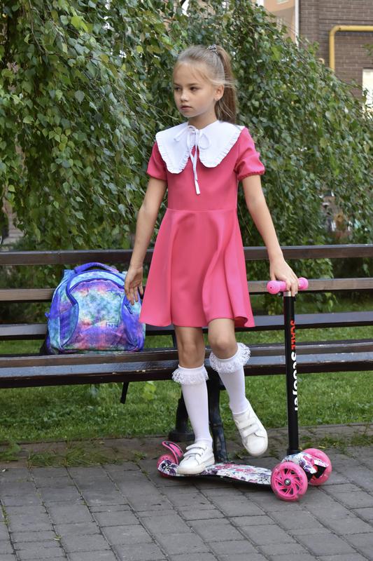 Стильна сукня трендового кольору. Можна одягати в школу ще на теплу частину осені. Комір окремо.