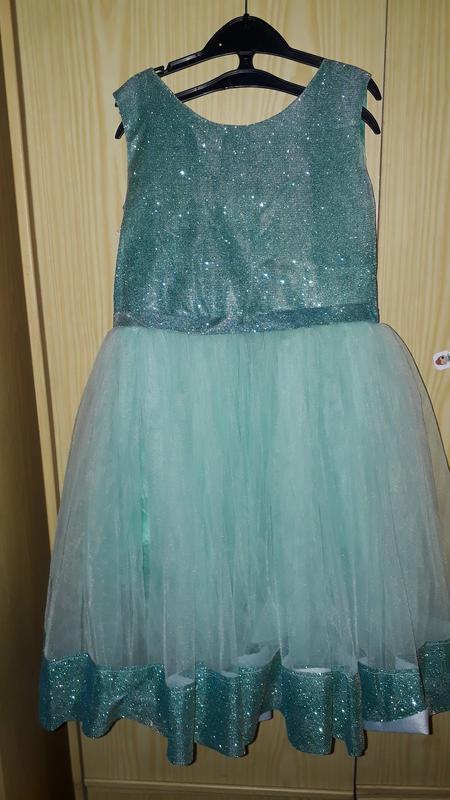 Нарядне плаття для дівчинки, в дуже хорошому стані, одягнене один раз на випускний в садку. Воно красиво мерехтить на сонці або на світлі. У такій сукні дівчинка виглядає шикарно.