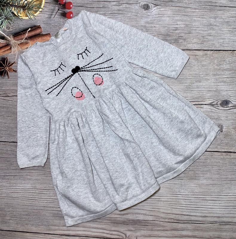 Красивое платье с кошечкой на 2-3 года. Длина 50 см рукав от горла 37 см
