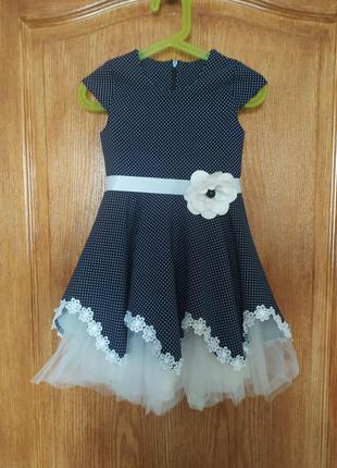 Сукня в дрібний горошок для дівчинки на ріст 104 см, довжина сукні 57 см,ширина під пахвами 26 див. Пояс знімний