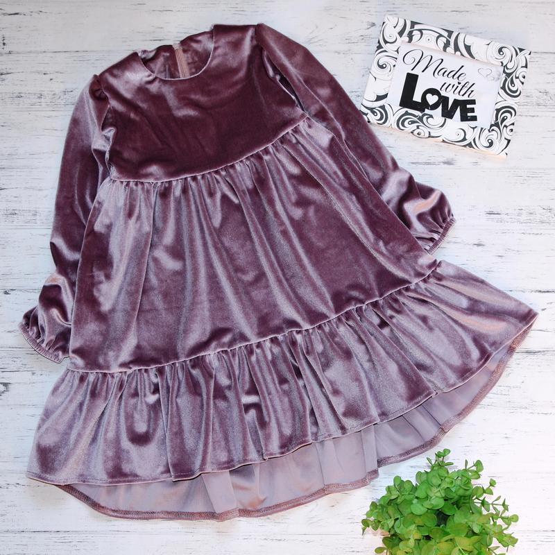 Шикарная новинка! Нереально красивое платье, оригинального кроя Талия завышена, по спинке удлинено Сзади на замочке Ткань бархат велюр (королевский) Отличное качество! Длина спереди/ рукав/ ПОГ р.110 54см/ 36см/ 27см = 1шт р.116 58см/ 40см/ 29см = 1шт *Погрешность +-2см