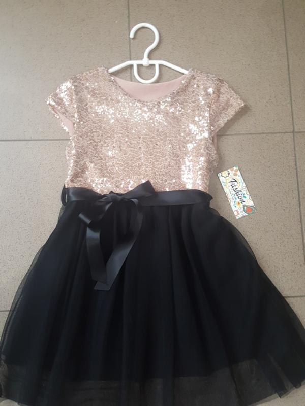 Плаття відрізне по талії, верх з паєток а низ фатіновий. На 4 роки. Довжина плаття 60см Обхват грудей 62cm