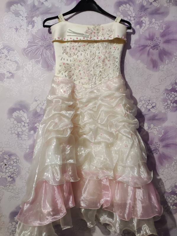Сукня ,кольору слонової кістки з рожевим, було одягнене один раз, ззаду стяжка з корсета. Довжина 1 метр, напівобхват по талії 33 см . Додаткова інформація та фото в особисті повідомлення. Ціна 400 грн