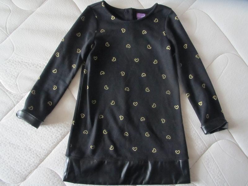 Стильне теплу сукню Shrinking Violet (США) з щільного трикотажу з оздобленням еко-шкірою по краю подолу та на манжетах. Застібається ззаду на три гудзики. Відмінний стан. Розмір на вік 5-6 років (ріст 116см). Заміри: довжина спереду від низу вирізу 55см довжина ззаду 60,5 см - ширина по грудях від пахви до пахви 34см, довжина рукава від плечового шва до краю загорнутого манжета 45см - довжина рукава від плечового шва до краю розгорнутого манжета 47см