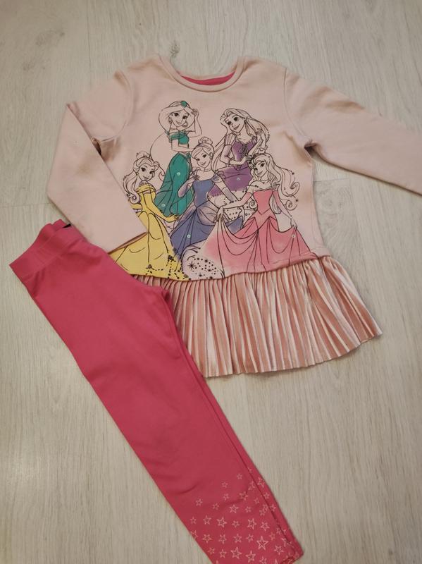Ніжно-персикового кольору плаття - туніка, на флісі і лосини. Ідеальний варіант для садка. Заміри: сукня ог 35, рукав-37, довжина 49. Лосини довжина 54, внутрішній шов 39, пояс 23.