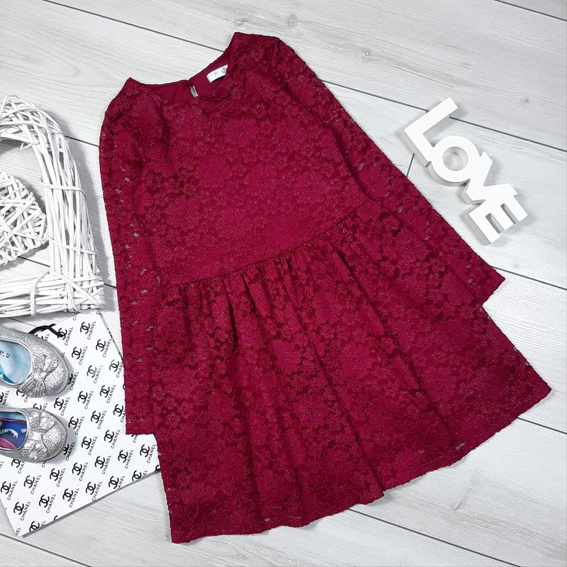 Нарядное платье M&S для девочки 9-10лет р.140см по бирке,состояние идеальное. В реале темно-бордовый цвет с блестящим напылением(оно не ярко выражено,но есть) Дл.68,5см до юбки 33см ПОГ 34см в поясе 31,5см рукав 48,5см