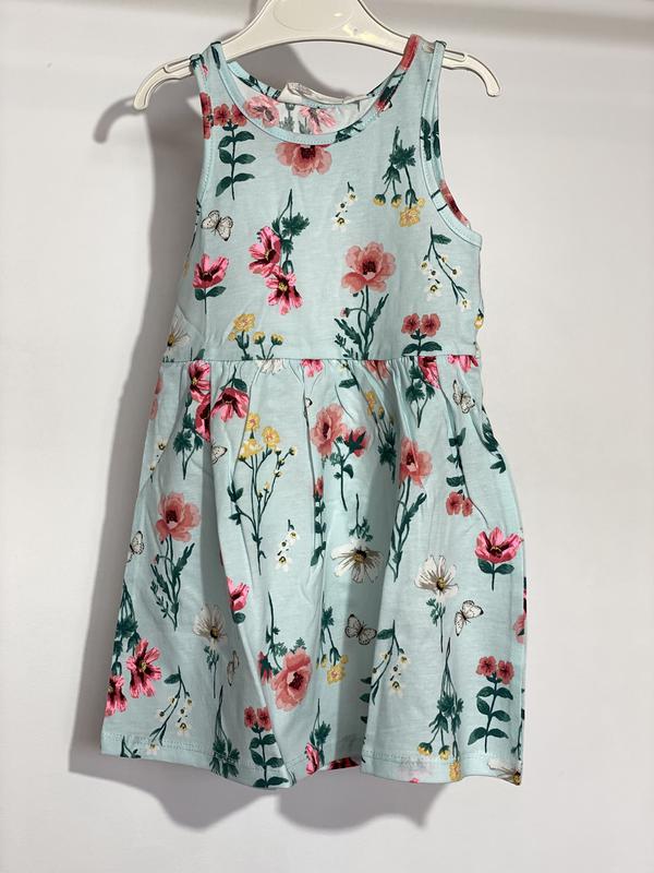 Сарафан для девочки 1,5-2 года 92 см, мятно-зеленого цвета, цветочный принт.