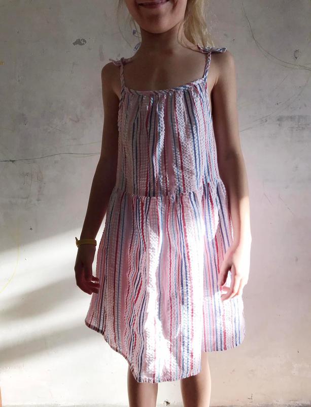 Легке базову сукню Primark на 7-8 років. Стан ідеальний. Довжина 66 см, напівобхват пахвами 32 см (збільшується, так як ззаду резинка), напівобхват по талії 35 см, бічний шов 46 див.