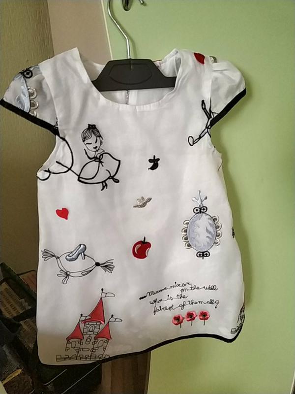 дуже красиве, ошатне і оригінальне плаття на якому нашиті ілюстрації з книги "Аліса в країні чудес". виробництво Португалії. під нього є болеро.