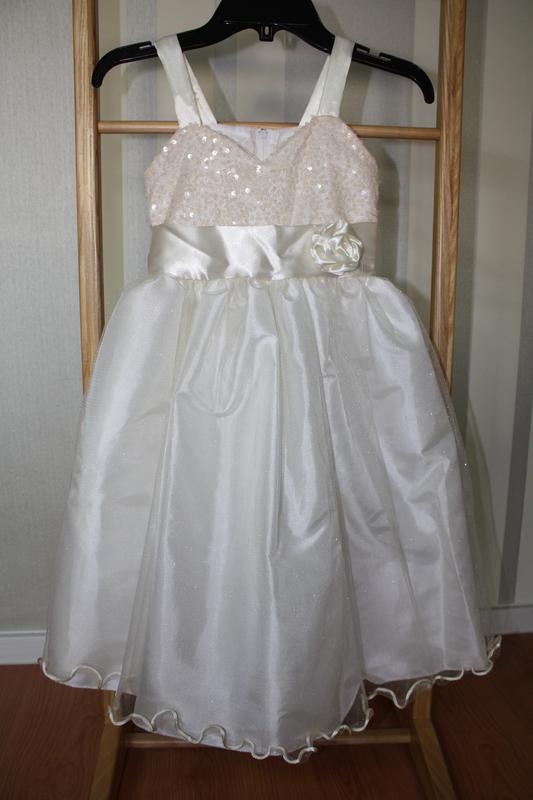 розмір 6 (без накидки) виміри: загальна довжина сукні від бретелей 65 см, бретелі від плечового шва 10 см, довжина бретелі до пояса 17 см, об'єм під пахвами 56 см,довжина від пахв до пояса-12 см, пояс 56 див. склад: 100% Бавовна, підкладка: 100% Polyester, Made in USA нове, без бірки