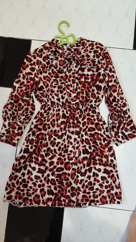 Стильна сукня із модним принтом, рукави прикрашені гудзиками, на шиї зав'язується на бантик. Фото на дитині в директ можу скинути. лефект перед останнє фото.