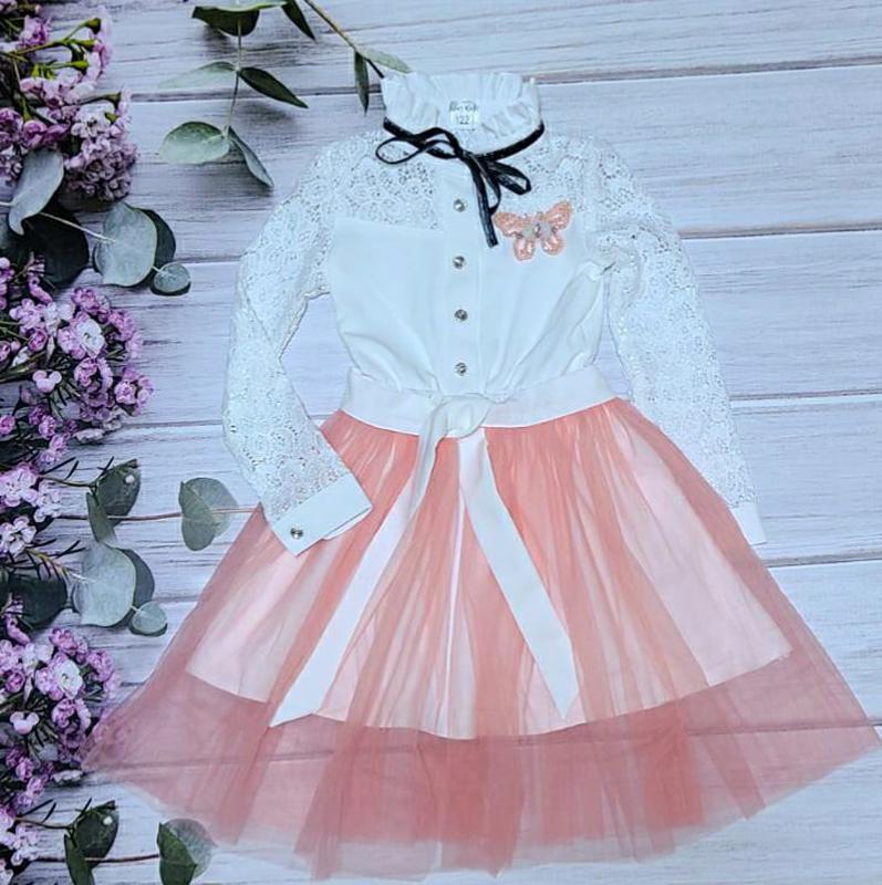 В наявності 😍 Ошатне плаття з фатиновой спідницею на зав'язках На рукавах є манжети Застібаються на гудзики В реалі дуже красиве Тканина костюмка,фатин брошка знімна, відстібається Ціна 445 грн виміри :плаття-довжина/рукав/пог-довжина спідниці 122р-65/46/32-47 128р-67/47/33-48 134р-70/48/34-50 140р-74/49/36-52 146р-75/53/38-54
