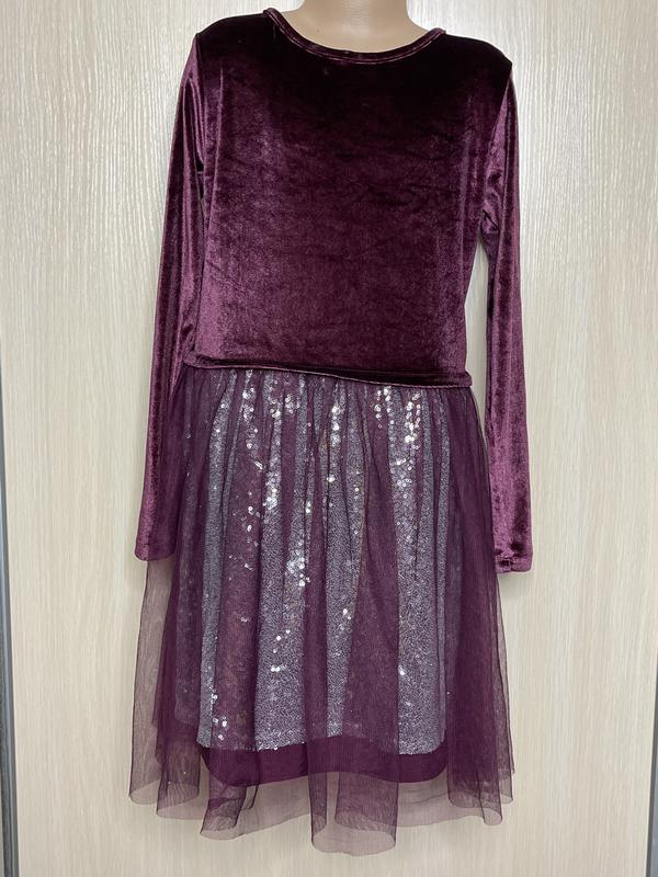 Сукня з длиным рукавом. Верх із велюру 3-х шарова спідниця Стан нової речі, тільки без бирки Колір як на фото 9-10 років Довжина 80(34). ПОГ 37. Рукав 49