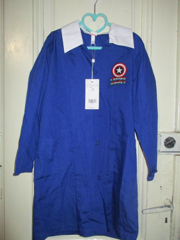 халат синього кольору.65 поліестер.35 бавовна.ПОГ 44.довжина 74.довжина рукава 46см