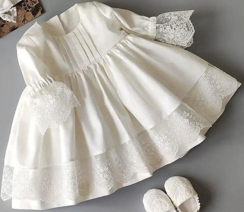 Хрестильне плаття, білого кольору з чудовим кружевом, шилося на замовлення