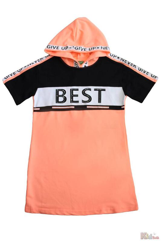 Приймаємо оплату карткою "Пакунок малюка". Плаття яскравого кольору для дівчинки. Модель з капюшоном, прикрашена написами.