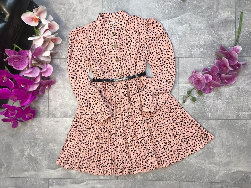 Гарне плаття з плісировка рукав ліхтариком ,тканина супер софт , застібається на гудзики , комір стійка , в поясі і на рукавах є резиночки , поясок входить в комплект змеры довжина\рукав\пог 134- 70/ 51/ 38 140- 73/ 53/ 40 146- 77/ 55/ 42 152- 81/ 57/ 44 артмаѕуа