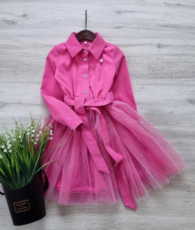 Миле платтячко для юної модниці верх-тканина вельвет спідниця евросетка,є атласна спідниця в пояс на резинці довжина без урахування фатину 122(4 шт)-довжина 60,рукав-43,пог 32 128(3 шт)-довжина 62,рукав 45,пог 33 134(3 шт)-довжина 65,рукав-46,пог 34 140(3 шт)-довжина 69,рукав-48,пог 35 146(5 шт)-довжина 72,рукав 51,пог 36 +-2см Ціна 510грн