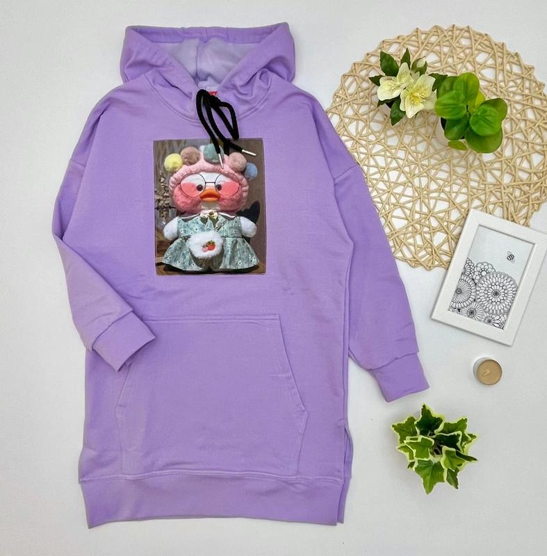 🦤Хіт сезону!!! гучна качечка плаття-туніка з капюшоном і кишенею кенгуру тканина якісна двунітка спів катышам стоп! 🦤качечка-нашивка СУПЕР ЯКІСТЬ!!!! розмір/🦤дл./пог/рукав від горловини 128/🦤69/43/55-3шт