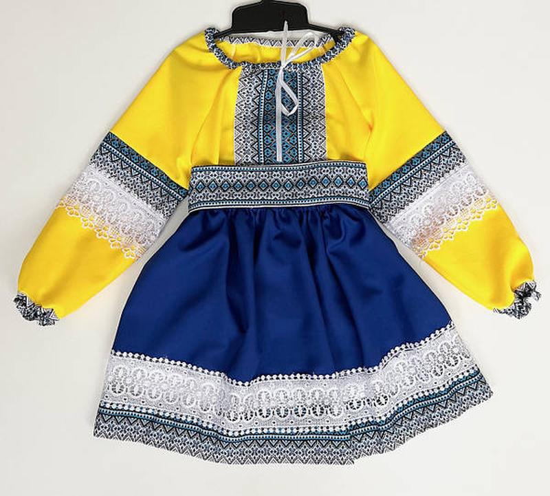 Тип тканини Габардин. Склад 100%-поліестр. Оздоблення та прикраси Вишивка. Розмір:86,104. р.86: рукав від горловини-35, довжина спідниці-26. р.104: рукав від горловини-42, довжина спідниці-31.