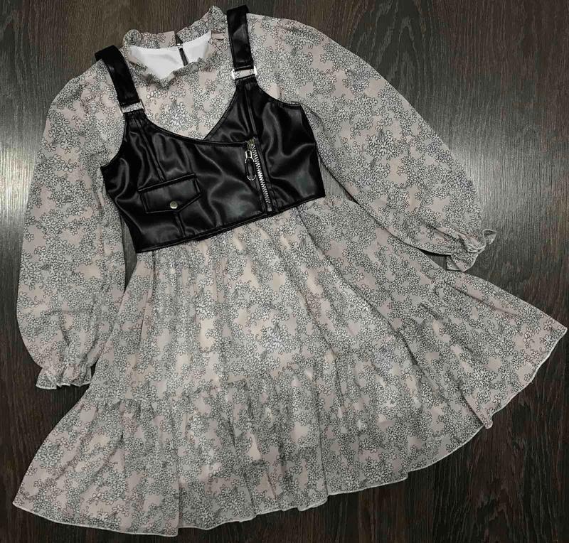 Дуже круте легке плаття🌹 сукні - шифон топ - еко шкіра в сукні є підкладка Розміри в наявності: 134см 140см 146см 152см Ціна: 580 Заміри!!!! 134см. Плаття: довжина рукава від плеча - 48см, довжина 70см, ширина - 37см. Топ: довжина з бретеллю - 30см, ширина - 31см. 140см. Плаття: довжина рукава від плеча - 50см, довжина - 72см, ширина - 39див. Топ: довжина з бретеллю - 31см, ширина - 33см. 146см. Плаття: довжина рукава від плеча - 53см, довжина - 76см, ширина - 40см. Топ: довжина з бретеллю - 32см, ширина - 34см. 152см. Плаття: довжина рукава від плеча - 55см, довжина - 78см, ширина - 43см. Топ: довжина з бретеллю - 34см, ширина - 35см.