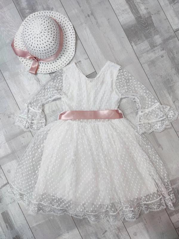 Розкішна та гарна сукня з поясом. В комплект входить шляпа. Оздоблене якісним кружевом та ажуром. Застібається ззаду на замочок. В реалі неймовірно чарівне. Обов’язково повинно бути в гардеробі вашої принцеси. Матеріал котон, низ фатін з котоновою підкладкою. Виробник Туреччина!!2-3р. Довжина 52,5см., ширина 28см, рукав від плеча 25см. 6-7р. Довжина 67см., ширина 30см, рукав від плеча 32 см. 7-8р. Довжина 70см., ширина 30,5см, рукав від плеча 33см. 8-9р. Довжина 73,5см., ширина 31см, рукав від плеча 36см. 9-10р. Довжина 77см., ширина 33см, рукав від плеча 37,5см. 10-11р. Довжина 86см., ширина 33,5см, рукав від плеча 43,5см. 12-13р. Довжина 90см., ширина 35см, рукав від плеча 44,5см. 13-14р. Довжина 95см., ширина 36см, рукав від плеча 47,5см.