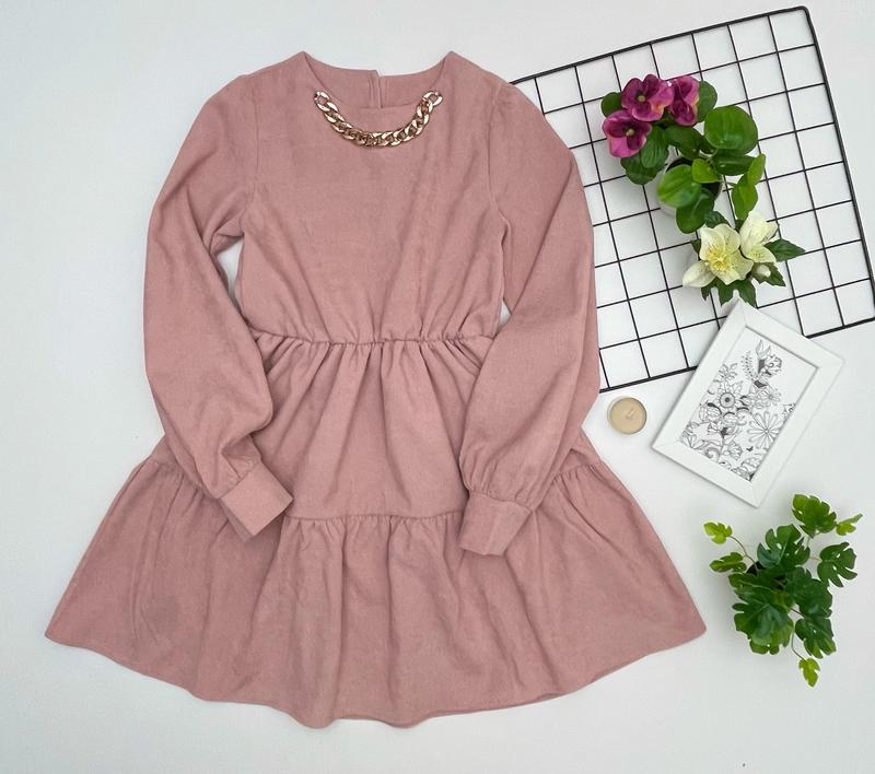 НОВИНКА! 🌳Платье микровельвет манжеты и верх спинки на пуговицах 🌳в талии под резинку украшено цепочкой цвет пудра РЕКОМЕНДУЮ! размер/🌳длина/пог/рукав от плеча 140/🌳70/35/53-1шт 146/🌳73/36/54-1шт 152/🌳75/37/55-1шт 158/🌳80/40/58-1шт 164/🌳82/41/60-1шт +-2см